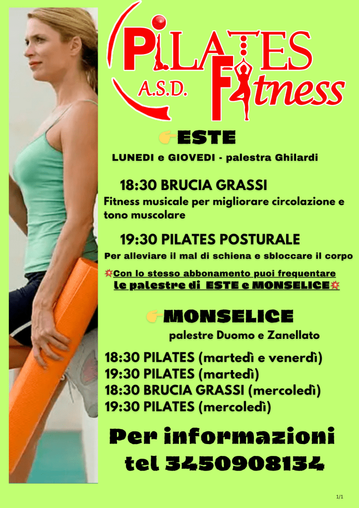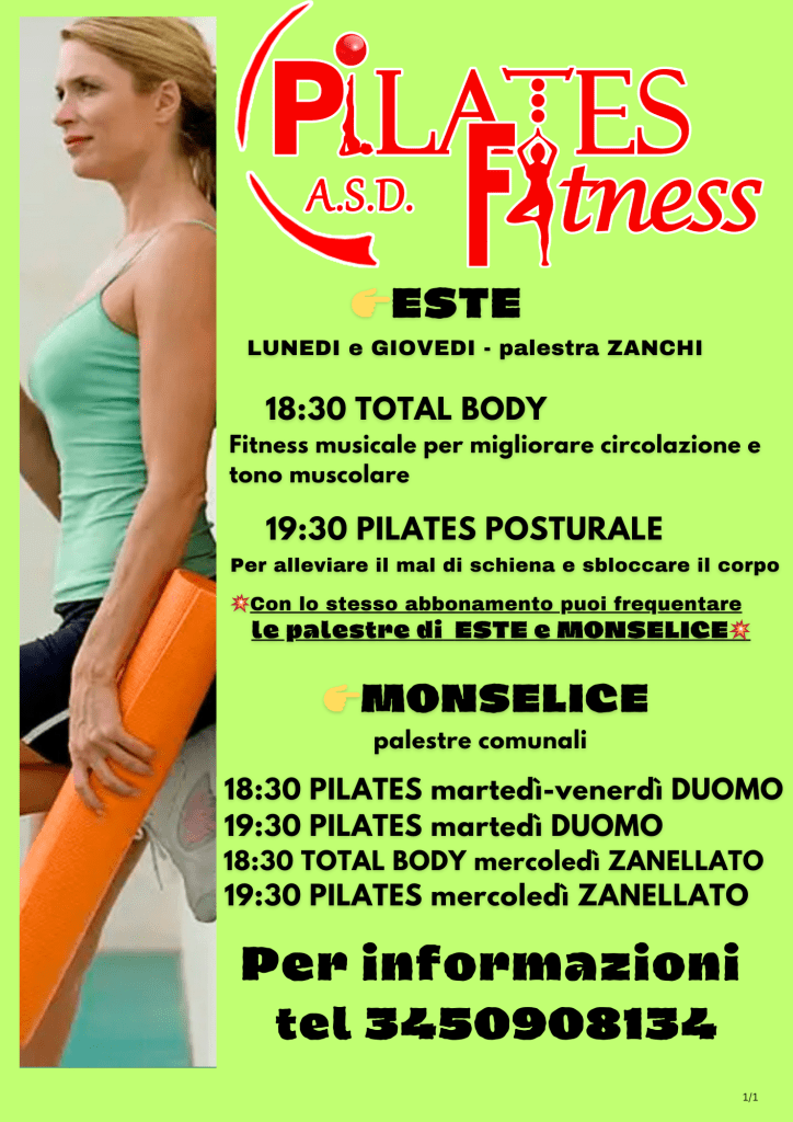 L’Associazione Sportiva Dilettantistica Pilates & Fitness, da quest’anno รจ presente anche a Este, oltre che a Monselice con i corsi che rendono entusiasmante il Pilates Posturale e la Tonificazione, sempre diversi e stimolanti, rivolti a persone sedentarie o che assumono per ore posture scorrette.